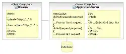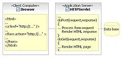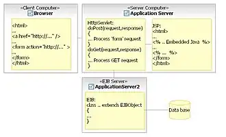 (Figure 2) Java got its popularity with server side programming, more specifically with J2EE servlets. Servlets are running in a simple J2EE framework to handle client HTTP requests. They are meant to replace CGI programming for web pages rendering dynamic content.