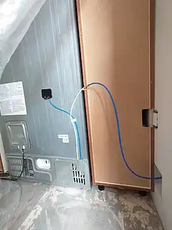 The water hose, which supplies our refrigerator with water, is much too short here! We had to extend it considerably.