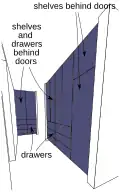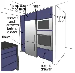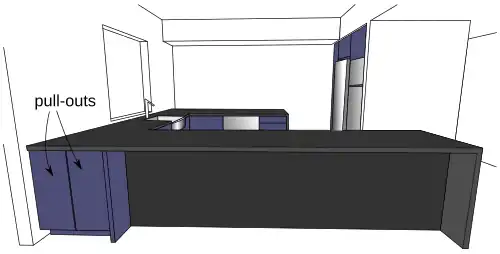 • a cabinet has outer drawers that upon opening would collide with a door frame, a wall outlet or any other protrusion of the wall