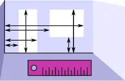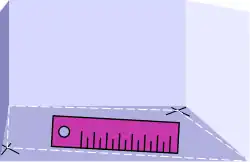Next, take measurements of the large dimensions (overall room dimensions). If in a corner the floor is marked (because the corners are not aligned), measure from the mark, not from the floor's corner. Never assume that opposing walls have the same length: take measurements of both. (You may even want to check out the diagonals and compare their lengths.)