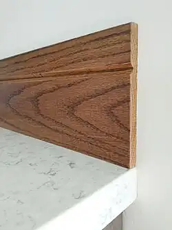 And now some details. Notice that the quartz material is actually only ¾" (19 mm) thick, but appears to be much thicker because there are strips of material added at the edges.