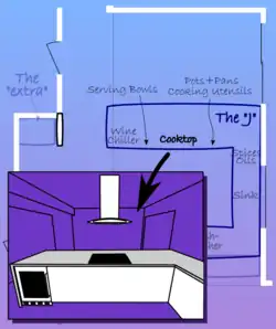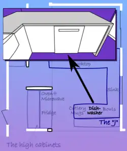 • it would be aligned to the side of the J where the cooking takes place (this is an aesthetic consideration),