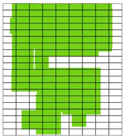 This is the corner were we started the work (top right); notice that we could start with a (more or less) full tile. -