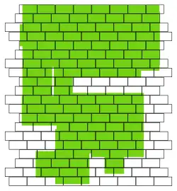By the way, there is much more in the realm of tile patterns than just the same old same old regular offset (1st and 4th images). Tile laying is a great chance to be creative and to invent your own. If you can draw it, you can probably do it. I figured that in my project and with the type of tile that I had chosen, an irregular pattern (roughly represented in the 5th image) would work best. When we laid those tiles out, we followed strictly the horizontal lines that were shown in our map, but operated very flexibly with the length of the first tile that we put down in every single row. Whenever we had a cutting left from the previous row that made sense to use again immediately, we did so, sometimes starting from the right end, sometimes from the left. This saved us a lot of material, too.