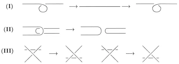 Theorem (Reidemeister's theorem). Every link has a link diagram. Also, two links are equivalent if and only if their link diagrams are related by a finite sequence of Reidemeister moves. Reidemeister moves consist of three very standard moves: RI - a twist, RII - moving one strand over the other, RIII - moving a strand over or under a crossing.