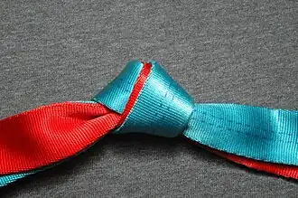 long and the knot should be "set" by tightening it with full body weight. The ends can be taped or lightly sewn to the standing parts to help prevent them from creeping back into the knot.[1]