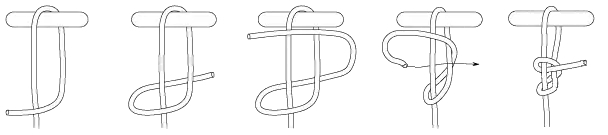 The buntline hitch is a knot used for attaching a rope to an object. It is formed by looping the rope (or other tying material) around an object, then making a clove hitch around the rope's standing part, taking care to tie the two half-hitches that compose of the clove hitch in the direction of the object, rather than away from it. Secure and easily tied, the buntline hitch will jam when subjected to extreme loads. Given the knot's propensity to jam, it is often made in slipped form.