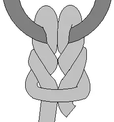 If working end of the line has an eye in it, and the standing end is accessible, the knot can be tied to a closed ring, another eye, or a rail with inaccessible ends, as follows. Pass the eye around the ring or rail, then pass the standing end through its own eye (this effectively forms a lark's head). Then pass the standing end through the eye again, and pull up tight, taking care to push the bight up snugly against the turns. When using the cat's paw to join two eyes, this process may be repeated several times to give several turns - as many as five in a fine fishing monofilament. Then when tightened, instead of pulling the bight up against the turns, both eyes are pulled equally, to make neat coils of turns in both eyes, meeting halfway between them. |
