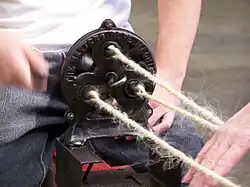 Twisted ropes are built up in three steps. First, fibers are gathered and spun to form yarns. A number of these yarns are then twisted together to form strands. The strands are then twisted together to form the rope. The twist of the yarn is opposite to that of the strand, and that in turn is opposite to that of the rope. This counter-twisting helps keep the rope together. On the other hand, rope constructed in this manner untwists under tension, which is the cause of spinning, kinking, hockling and stretching. Any rope of this type must be bound at its end by some means to prevent untwisting. Twisted ropes have a preferred direction for coiling. Normal right laid rope should be coiled with the sun, or clockwise, to prevent kinking. Coiling this way imparts a twist to the rope. One of the drawbacks of this construction is that every fiber is exposed to abrasion numerous times along the length of the rope. This means that the rope can degrade to numerous inch-long fiber fragments, which is not easily detected visually.