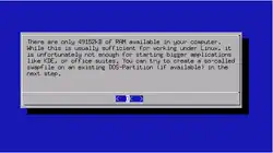 If there is less than 80,000 Kb free RAM, Knoppix will prompt you to create a swap file. A swap file lets you use part of the hard disk as if it were RAM.