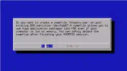 4. Knoppix will search for an available FAT formatted partition. If there is more than one, Knoppix will choose the last available partition. You will be asked if you want to create a swap file on the partition that Knoppix has selected.