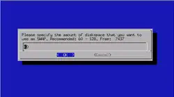 6. You will be asked how big a swap file you want to create. You need a swap file that is large enough to take the free RAM + swap file total to at least 80,000 Kb.