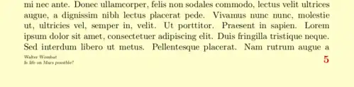 \ifoot*{Walter Wombat\\ Is life on Mars possible?}% Name and title beneath each other in the inner part of the foot
