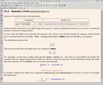 LyX is a popular document preparation system for Windows, Linux and Mac OS. It provides a graphical interface to LaTeX, including several popular packages. It contains formula and table editors and shows visual clues of the final document on the screen — which enables users to write LaTeX documents without worrying about the actual syntax. LyX calls this a What You See Is What You Mean (WYSIWYM) approach, since the screen only shows the structure and an approximation of the output.[4]