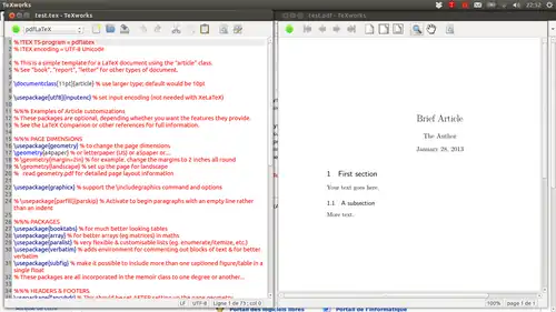 TeXnicle is a free editor for Mac OS that includes the ability to perform live updates. It includes a code library for the swift insertion of code and the ability to execute detailed word counts on documents. It also performs code highlighting and the editing window is customisable, permitting the user to select the font, colour, background colour of the editing environment. It is in active development.