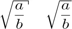 Note that when appearing inside another fraction, or in inline text , a fraction is noticeably smaller than in displayed mathematics. The \tfrac and \dfrac commands[note 1] force the use of the respective styles, \textstyle and \displaystyle. Similarly, the \tbinom and \dbinom commands typeset the binomial coefficient.