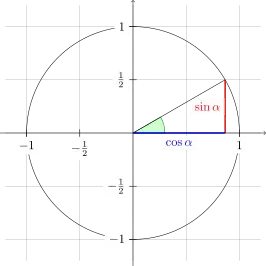 \draw[very thick,red] (30:1cm) -- node[left,fill=white] {$\sin \alpha$} (30:1cm |- x axis);