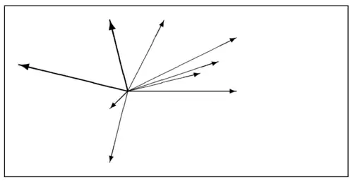 For arrows, the components of the direction vector are even more narrowly restricted than for line segments, namely to the integers (−4, −3, ... , 3, 4). Components also have to be coprime (no common divisor except 1). Notice the effect of the \thicklines command on the two arrows pointing to the upper left.