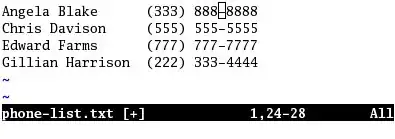 In this case, the user wants to change the spaces to dashes. To change text, we press 'c'. The spaces all disappear, and the changes are shown only in the current line while we type:
