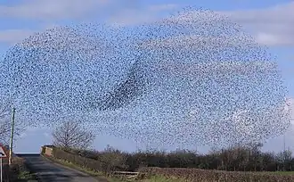 Certain birds exhibit swarm intelligence while flying, known as flocking. Flocking behavior results from individual birds following three simple concepts: separation, alignment, cohesion. By attempting to keep a constant distance from and similar alignment with neighboring individuals, complex, unpredictable flight patterns can emerge.