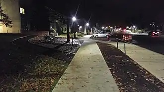 Emergent behavior can be witnessed in all walks of life. One example is how a pathway can be created during a construction project. Pictured to the right is two, parallel sidewalks on McCormick Road at the University of Virginia. The sidewalk on the right is the original sidewalk, while the one on the left is newly developed. During the fall semester semester of 2015, a construction project blocked off the original sidewalk on the right. Students walking through this area either could walk on the road (far right) to get around the project, or they could walk through the grass. Students choosing to take the safer route through the grass began to form a worn down trail, and as a result the construction crew decided to add the newly developed sidewalk to provide a new path around the construction. This is why students walking down McCormick Road will come across this odd pair of parallel sidewalks.