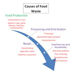 Food waste in retail is a result of overstocking shelves in order to maintain full shelves, throwing out produce that is physically undesirable,[8] and expired “sell by” dates that get discarded to make room for a fresher product.Drivers of waste in food service include large portions provided to customers, inflexibility of chain-store management, and pressure to maintain enough food supply to offer extensive menu choices at all times.[9] Food waste in households is a result of bulk purchases, poor planning, and over preparation.[10]