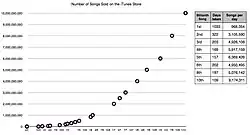 What does this mean for businesses looking to make a profit, like Apple's iTunes store? According to Apple policy, any song purchased on iTunes can be shared with up to five computers [8], but with 8tracks' new Mac Uploader, 8tracks users can upload their purchased music directly from iTunes and anyone in the world can listen to their digital mixtape. This does not appear to be hurting iTunes sales (see figure at right), and these free music sharing websites have in turn spurred a whole new community of musicians looking to employ a "digital strategy" in publicizing their music. For example, the techno/hip-hop duo Timeflies have found tremendous success through digital marketing by posting what they call "Timeflies Tuesday" videos on YouTube each Tuesday, hosting a Facebook fan page, updating a Twitter profile, and offering free downloads for some of their tracks on SoundCloud[9]. Initially creating new songs simply to share with their friends, Timeflies' free online marketing strategy has been a huge success. In July, they released a mixtape that fans could download at no cost, and, as of December 2012, the mixtape has racked up almost 2.4 million YouTube views [10]. Most recently, Timeflies released an EP on iTunes, One Night, reaching the top of the charts in a matter of hours [11].