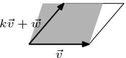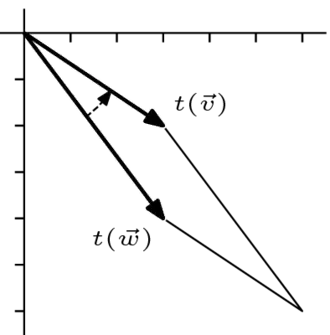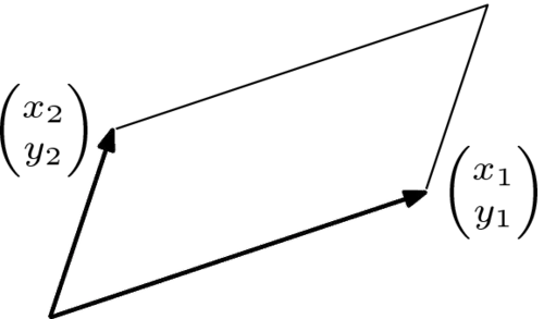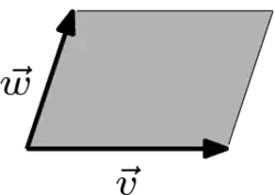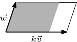 The region formed by and is bigger, by a factor of , than the shaded region enclosed by and . That is, and in general we expect of the size measure that . Of course, this postulate is already familiar as one of the properties in the definition of determinants.
