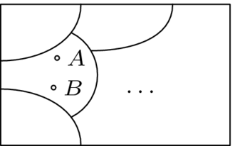 The diagram below shows the collection of all matrices as a box. Inside that box, each matrix lies in some class. Matrices are in the same class if and only if they are interreducible. The classes are disjoint— no matrix is in two distinct classes. The collection of matrices has been partitioned into row equivalence classes.[2]