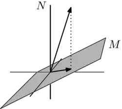 Notice that the projection along is not orthogonal— there are members of the plane that are not orthogonal to the dotted line. But the projection along is orthogonal.