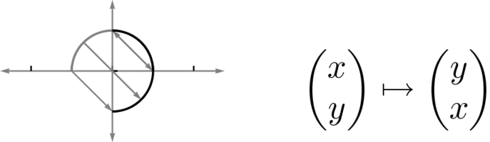 Certainly the geometry here is more evident. For example, we can see that some lines through the origin are actually sent to themselves: the -axis is sent to the -axis, and the -axis is sent to the -axis.