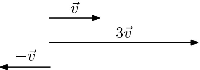 we can now interpret those operations geometrically. For instance, if represents a displacement then represents a displacement in the same direction but three times as far, and represents a displacement of the same distance as but in the opposite direction.