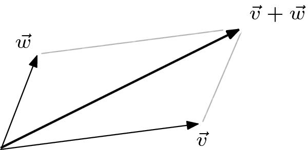 Another way to understand the vector sum is with the parallelogram rule. Draw the parallelogram formed by the vectors and then the sum extends along the diagonal to the far corner.