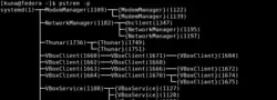 - The first real process is init, and in the new systems systemd, which has an identifier of 1. The following started processes originate from that process, so the processes in relation create a tree-like structure → pstree