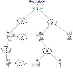 - ↑ Really the spanning tree algorithm blocks ports, not links: {{subst:vedi|#Port states}}