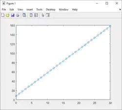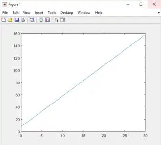 For the first MATLAB plot, we are going to plot the classical linear equation y = mx +c