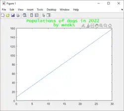 title({'Populations of dogs in 2022 ','by weeks'}, 'Color','g','FontSize',14,'FontName','Lucida Console')