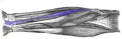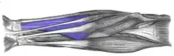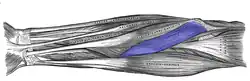| Flexor pollicis longus | Performs the equivalent role for the thumb as the flexor digitorum muscles do for the other digits. | Flexes MCP and IP joints of thumb. | Anterior interosseus nerve, from median nerve (C8+T1) | ![]() |