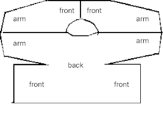 The neck requires a border too, either a rib border or a crochet border with holes for a string, otherwise it becomes too large. Likewise, the bottom edge and the wrist edge must have a crochet border, otherwise they will roll.