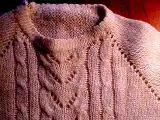 If you are knitting a pattern, instead of making shortened rows, you can make the armhole higher; and when you place the armholes on the machine, you pick up stitches for the sleeve with a bigger space between the needles nearest the back of the shoulder. If a person has a round back, it is important to make a sweater longer, otherwise it will not only be too short, but also make sloped folds.