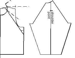 In figure 2b, the tuck is moved to the shoulder seam, if you are going to knit sideways. The dotted line shows here the basic pattern's original as well.
