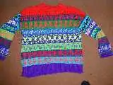 If you have a garter carriage, you can make wrong/rightside patterns coded by punch cards. It is possible to make these patterns without comb and weights, at least on BROTHER. The sample is made in the same way as a plain knitted sample. The garter carriage knits by itself, but on the other hand it works very slowly. I would guess that a hand knitter might knit almost as fast. The advantage is that you do not have to sit next to it. But if the stitch number has to be decreased or increased, you must take care to be there in time, otherwise it will last several days to knit one piece. If you want to shut off the machine, e.g. during the night, you may risk that the pattern has become displaced when you turn on again. Therefore, you should always, if possible, encode the pattern so that it stays in right place.