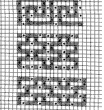 With this kind of knitting you may, for example, knit a name into the rib border on stockings. You have to make the letters both upside down and mirror imaged. If, on the other hand, you have a machine that can knit downwards from above, the letters shall not be made as their mirror image, as they become so when they are turned upside down. Remember that stockings are knitted downwards from above. If you have a punch card covering 24 stitches, there will only be room for the initials. Only if you have a print card or a diskette, you will have room for the whole name. If you have cast on 60 stitches for stockings, there will be room for a name with 5 letters, or, if one of them is i or j, it can be 6 letters.