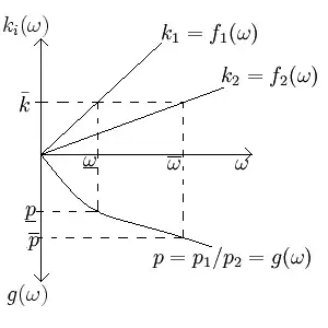 On the other hand, normalizing the equation (or , which is presumably equivalent), and solving for the price ratio, gives the formula which is to be graphed in the fourth quadrant.