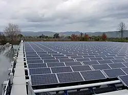 Solar panels have been around since the early 70s for commercial purposes. Only now with economies and power crises around the world are they becoming very popular. Photovoltaic panels are made up of many small cells each having a voltage of around 0.4-0.6V these are then connected in series or parallel to produce a panel of a certain size and specification. Current photovoltaic panels use a single layer of very pure silicon to convert solar radiation into electricity. Next generation panels incorporating up to five layers of slightly less pure, and hence much cheaper, silicon are just around the corner. Photovoltaic panels are fairly inefficient, converting around 10% of the light falling on them into usable electricity, and hence a very large area of panels will be required to provide a sizeable power output. It might be worth calculating the relative efficiency of plants converting light into chemical energy, and the subsequent efficiency of burning this (for example, as plant oils, ethanol or methanol) in an engine to produce electricity, and comparing this to solar panels. Photovoltaic cells also have a problem with temperature, becoming less efficient the hotter they get.