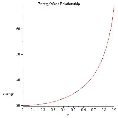 E=mc^2 is a very famous equation which describes the relationship between energy and mass. The full equation involves a gamma function which basically modifies the answer based on the speed. This graph shows that as the velocity approaches the speed of light, the energy approaches infinity.