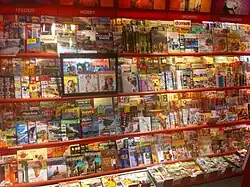 Magazines are distributed in several ways. Magazine issues can be sold individually on the newsstand, including grocery stores. They can also be sold as a subscription where several issues will be delivered by mail for a set fee. Other methods include targeted mailings to particular places, or "dropping" issues in high-traffic places like stores, salons, and doctor's offices.