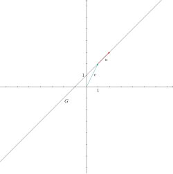 In general, a line does not pass through the origin . Thus is not a subspace of , since by definition every subspace contains the origin. However, the line is a displaced version of the line by the vector . Here is a line passing through the origin. This is a subspace because it contains the origin and is closed under addition and scalar multiplication. That is, every straight line is given by the choice of a (one-dimensional) subspace and a vector . This justifies the notation . This notation can also be formalised: