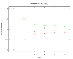 It looks as if converges to . This gets particularly clear, if we plot the sequence elements in a diagram: