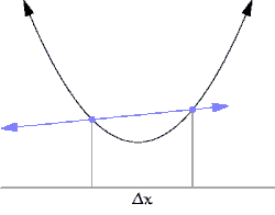 The derivative corresponds to the limit value . The difference quotient is the slope of the secant between the points and . In the case of the boundary value formation , this secant merges into the tangent that touches the graph of at the point :